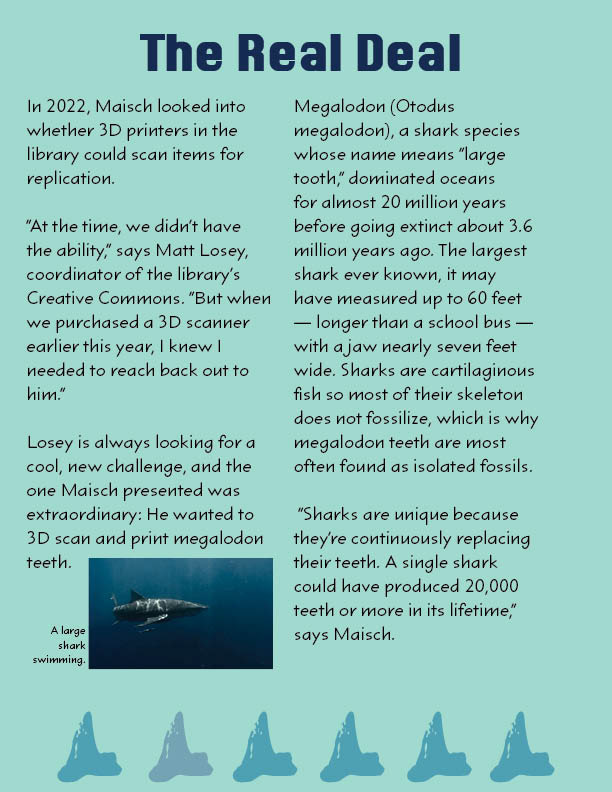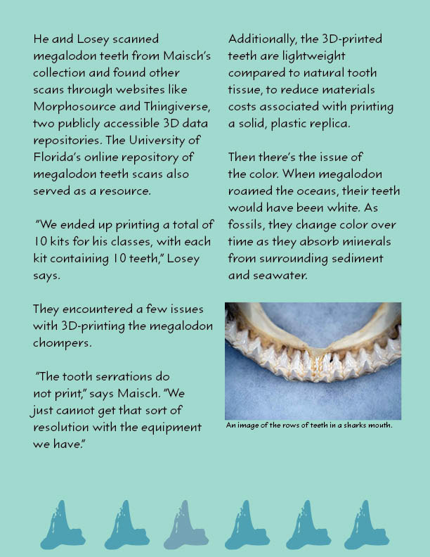 As a project in class we were given the opportunity to choose 1 of 5 articles from my schools online news source to redesign as a magazine. I chose Shark Tales and decided to make the cover a shark swimming with a font that looks like it is a part of the water. I chose to keep the colors to a turquoise theme. The shark teeth at the bottom symbolize the page number you are on.