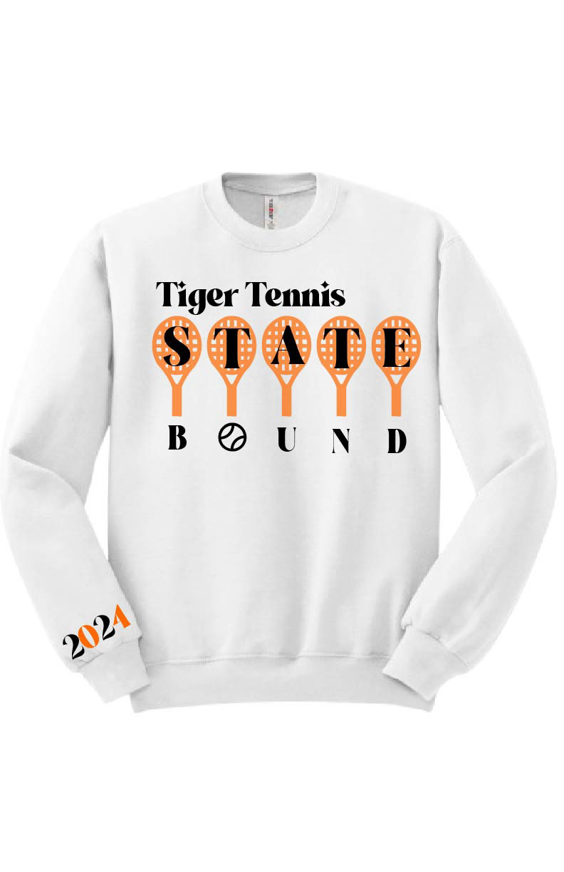 This was a project my mom asked me to do as a surprise for my sisters tennis team. I was told to create a sweatshirt for their trip to state. My mom gave me full creative freedom, but told me to use the colors of the school and have it say "State Bound" somewhere on the sweatshirt. My idea behind this was to make the words state stand out as much as possible. I also wanted to include the mascot somewhere in the design. The year on the sleeve was added to make the sweatshirt more personal, and more of a keepsake.